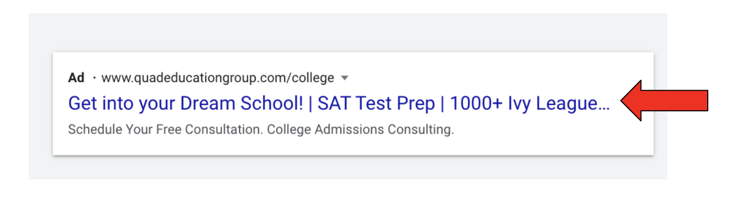 Broad: “College Consultants near me”, “Best colleges near me” or “SAT Test prep”
