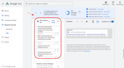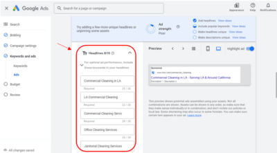Here is a sample of your Google Ads for Commercial Cleaning Ad campaign: