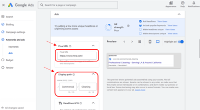 For Ads, enter your URL or business website in the Final URL Box. As for the Display Path box, you may want to enter words related to your products or services