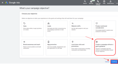 To start click on Create A Campaign without a Goal’s Guidance.