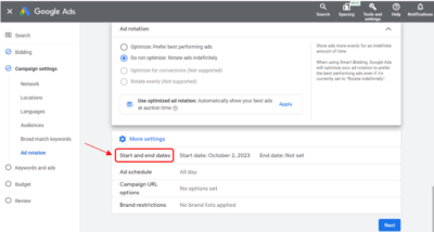 Type in your planned start and end dates you would like your Google Ads for mortgage brokers campaign ad to run.