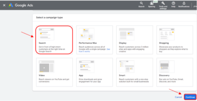 Proceed to the Campaign Name box and enter the name for your first Google Ads for Mortgage Brokers campaign. Click Continue.
