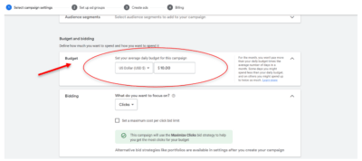 Under the Budget box, enter the amount for your daily budget for the campaign.