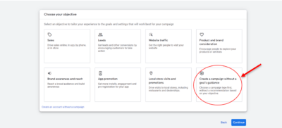 On Choose Your Objective Page, Click Create a Campaign without Google’s guidance.