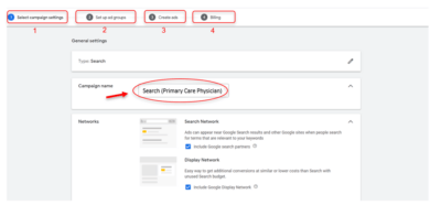 I have mentioned earlier regarding understanding your ad targets and intentions for your primary care business, this is where we will apply them. This part is where you can separate your ads into different groups with unique targets and objectives.