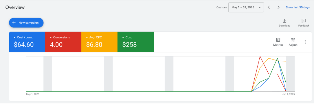 With the landing page stabilized, we immediately moved into intense budget protection and control.