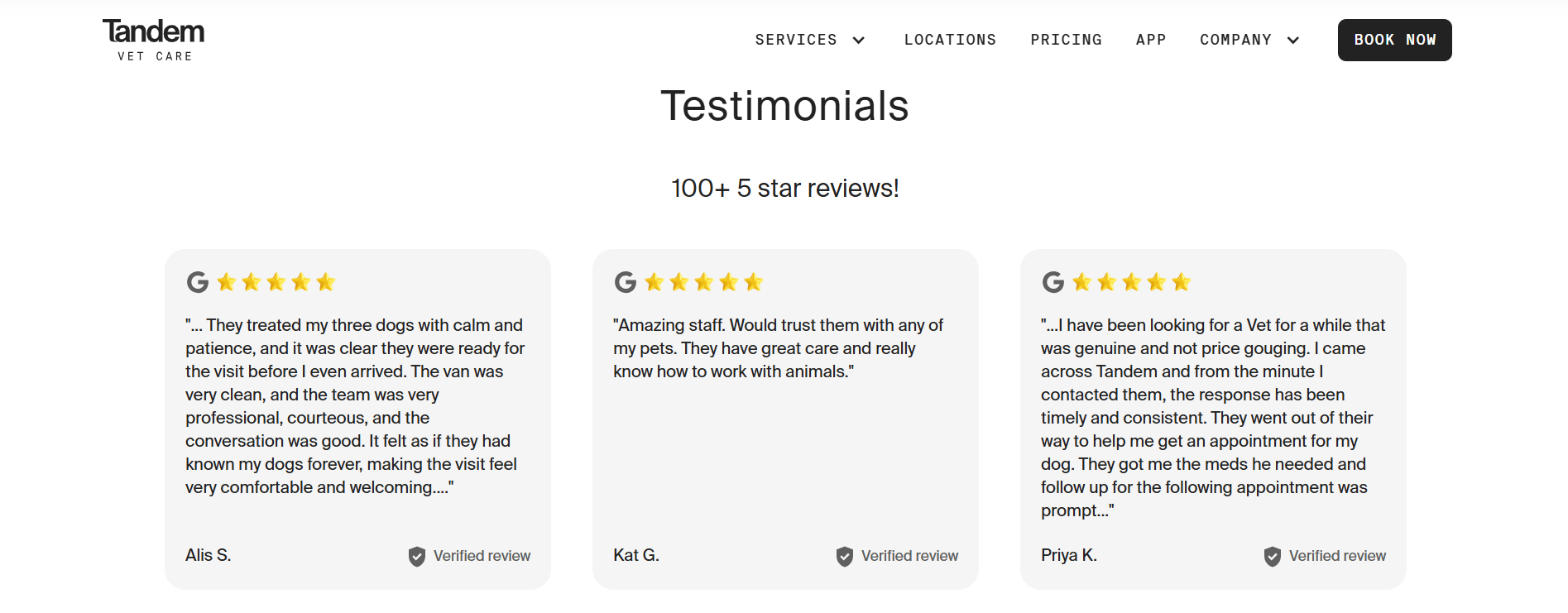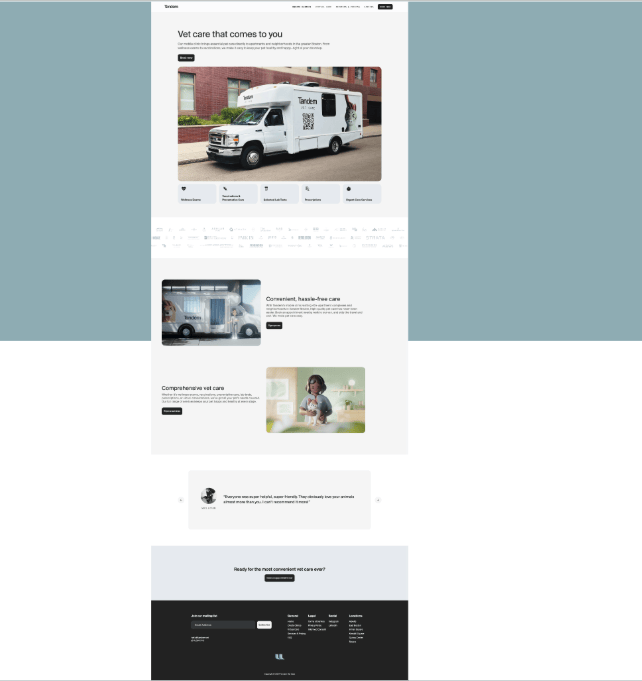 We added authentic clinic photos, all price information (Transparent Pricing), and Tandem.vet’s full library of local service testimonials to immediately showcase their strongest selling points.