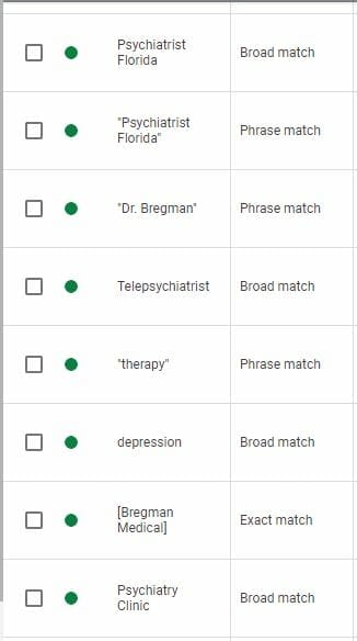 As a result of running Google ads, here are some of the new patients we brought in for Dr. Bregman’s telepsychiatric clinic.