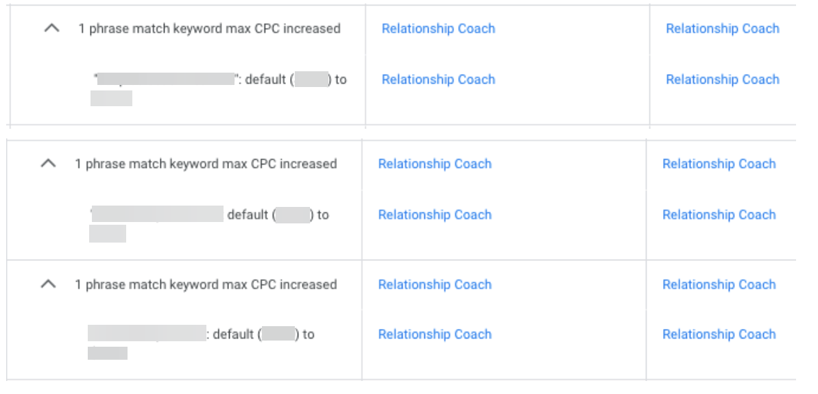 g. Max CPC increased for the below first-page bid keywords