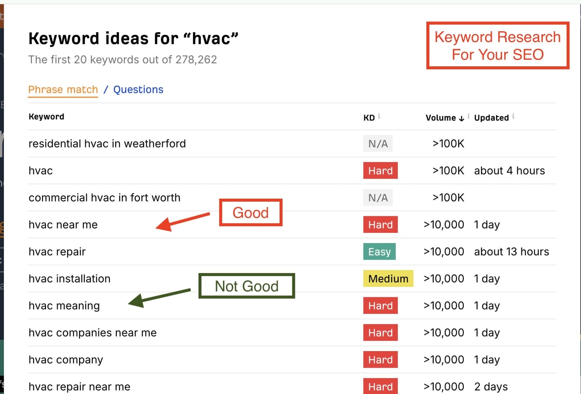 Understanding keywords is like learning the exact words people type into Google when they need HVAC help. If someone’s heater breaks in the middle of winter, they might search “furnace repair near me,” and if their AC stops working in the summer, they might type “emergency AC repair in Los Angeles.”