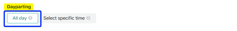 Recommendation: Unless you have data showing that your audience is only active at certain times, it is best to leave this on “All Day”. This allows the algorithm to find the most efficient times to deliver your ads.