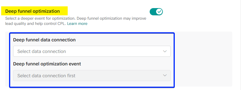You will want to choose Deep Funnel Optimization. This means you are telling the algorithm to look for people who are not just likely to click on your ad, but are also likely to become a valuable, high-quality lead. It helps you get the most out of your budget by focusing on the people who are most likely to follow through and book an appointment.