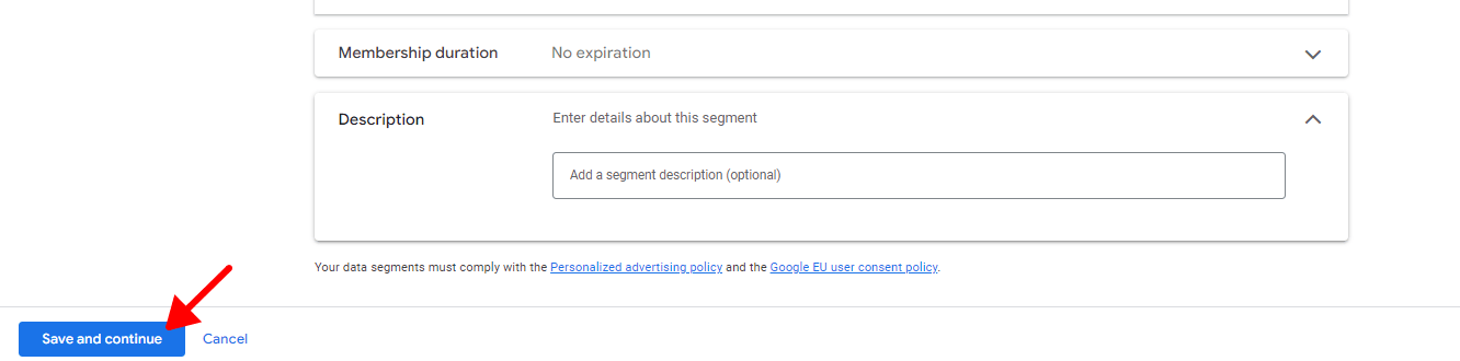 If you want to set a membership duration, then you can do so here. You can also add a description so it’s easier to remember the contents of your customer list. Once done, click “Save and continue”.