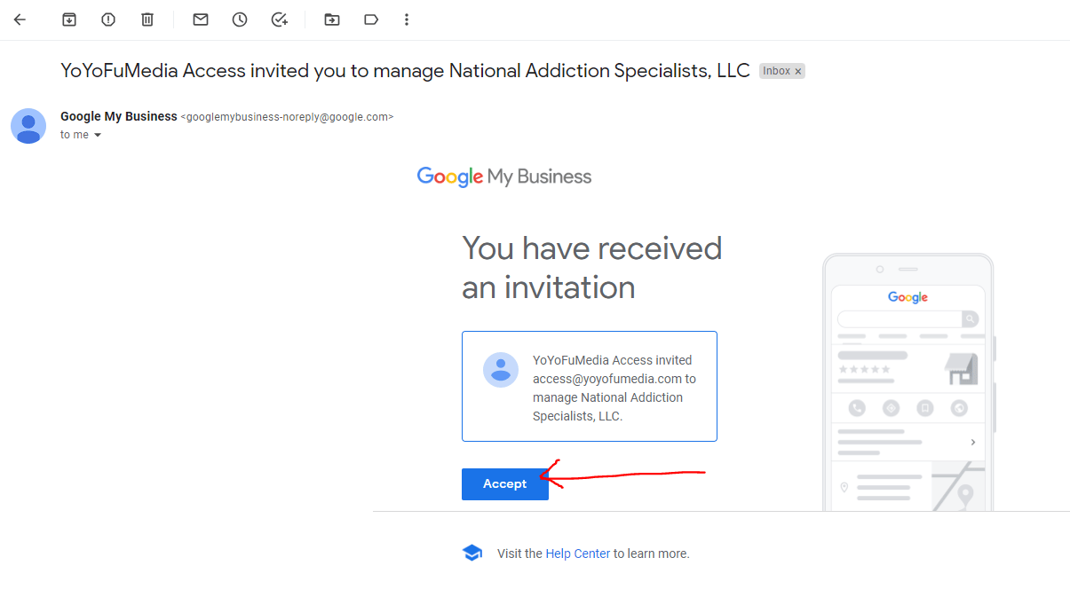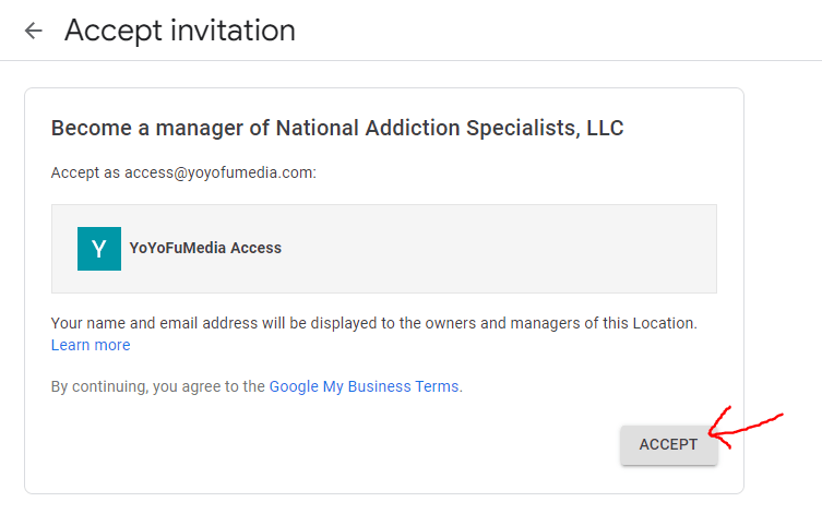 Step 1: If the profile is created by an agency, ask for access and you should receive an email like this:
