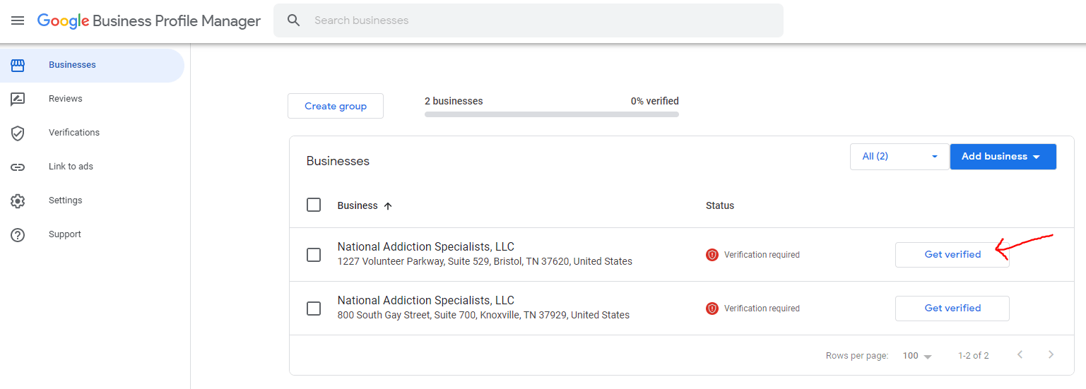 Step 4: Now log in to your Google My Business account and you should see all the businesses that you are managing. Click “Get verified” for the profile that you want to verify.